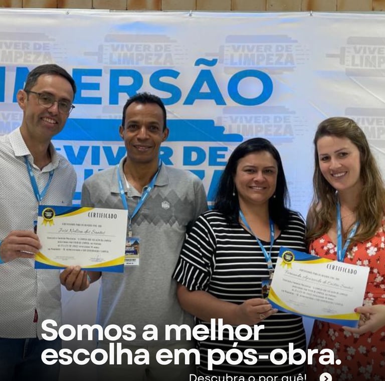 Oferecemos limpeza pós-obra e manutenção especializada, garantindo ambientes limpos, seguros e saudáveis para residências, condomínios e espaços comerciais. Nossa equipe é altamente capacitada e comprometida.